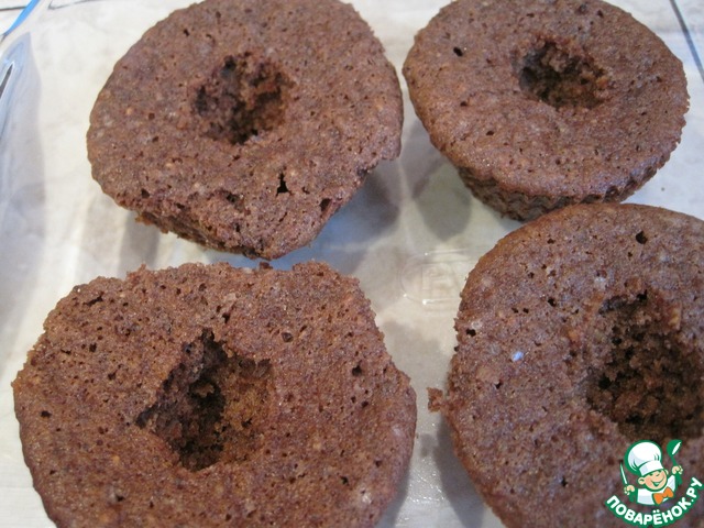 Соберём пирожные: у капкейков вынем серединки (не повредив донышко).