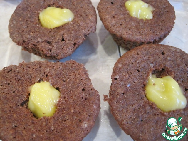 Заполним пустые серединки капкейков лимонным кремом.