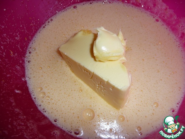 Добавляем очень мягкое масло и взбиваем.