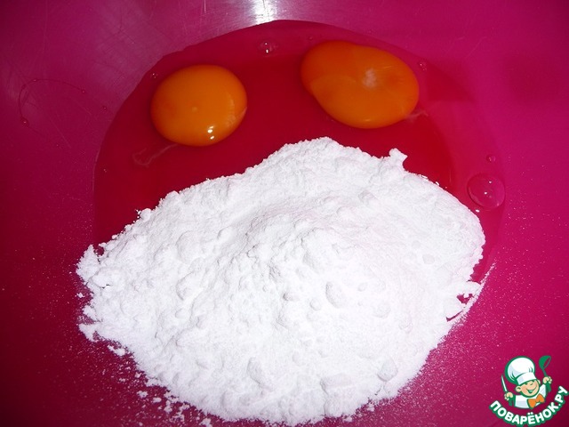 Яйца взбить с сахарной пудрой и ванильным сахаром.