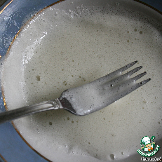 Ставим в хорошо разогретую духовку. В оригинальном рецепте было дано на все 15 минут, но мне не хватило, мои пеклись полчаса. До румяной корочки, но немного не до конца... И, тем временем, готовим глазурь: белок (запросто можно обойтись половиной объема) взбить с 2 ст.л. сахара, но не до "крутых пиков", а просто в пенку - нам нужна не шапка, а глазурь...