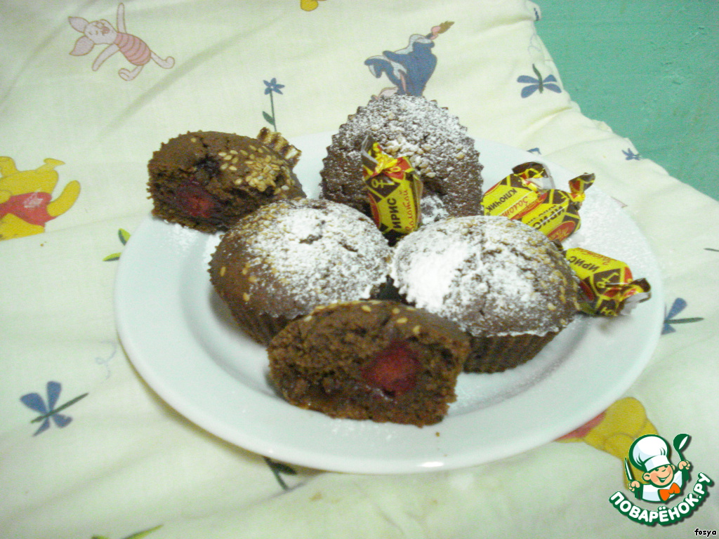 | Шоколадные кексы с начинкой из вишни и ирисок. Очень просто, доступно, не затратно. Легкие в приготовлении, даже для начинающих кулинаров. Надеюсь, что этот простой рецепт всем понравится! |