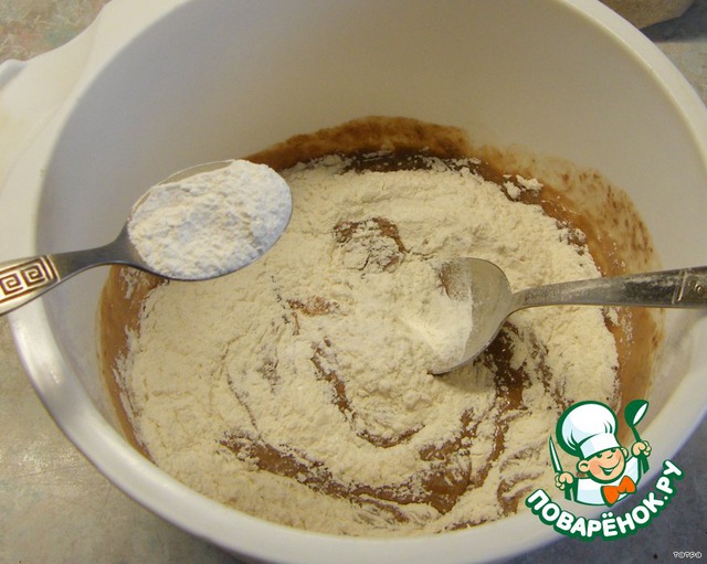 Добавить муку и разрыхлитель.