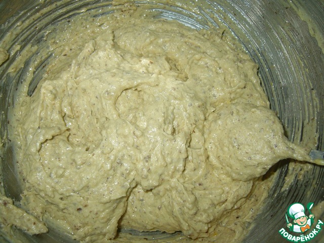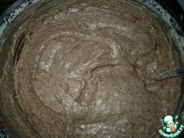 Полученную смесь всыпать в масляную смесь и осторожно перемешать до однородности