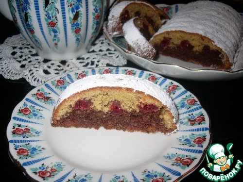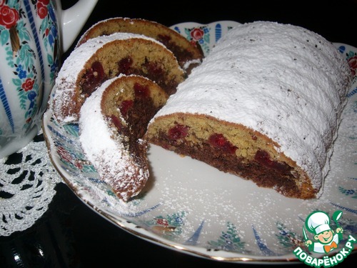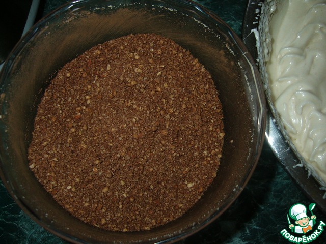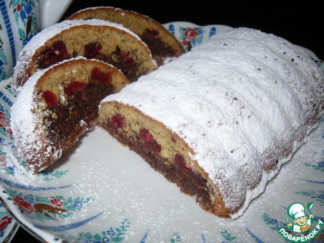| Кекс для любителей орехов. Ореховое безе, за счёт орехов и какао, превращается при выпечке в бисквит. Два разных вкуса тёмного и светлого слоя с ноткой вяленой вишни-великолепный контраст, который хочу подарить замечательному поварёнку Ларисочке Kleine Hase. |