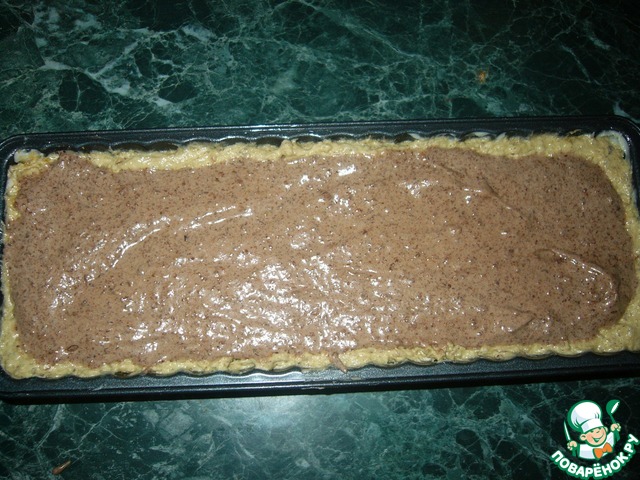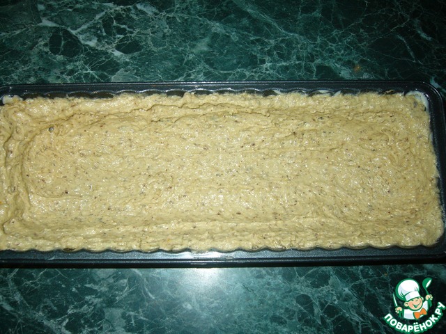 В форму (у меня 30Х12 каждая), смазанную сливочным маслом и посыпанную сухарями, выложить тесто так, чтобы были бортики