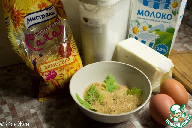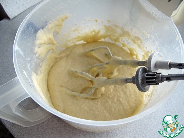Поставить духовку на разогрев при 180 градусах. Мягкое масло взбить с сахарным песком до пушистого состояния. Продолжая взбивать ввести яйца и молоко.