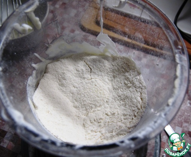 В жидкую смесь при непрерывном размешивании введите мучную смесь.