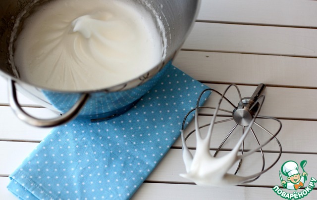 Белки взбить с 25 гр. фруктозы до плотных и устойчивых пиков.
