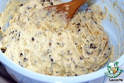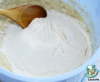 При помощи деревянной ложки аккуратно перемешать тесто, оно должно быть густым и комковатым.