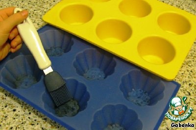 6. Подготовить формы, если необходимо, смазать их маслом (у меня одна формочка "Тескома", а вторая - просто силикон, ее то и нужно смазать, чтобы кексы в итоге получились целыми ;-). Были прецеденты :\'().