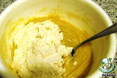 5. Добавить в готовое тесто творожно-банановую смесь и тщательно перемешать.