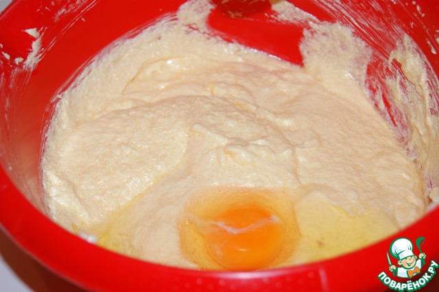 Масло взбить с сахаром и ванилью добела, не переставая взбивать ввести по одному яйца.