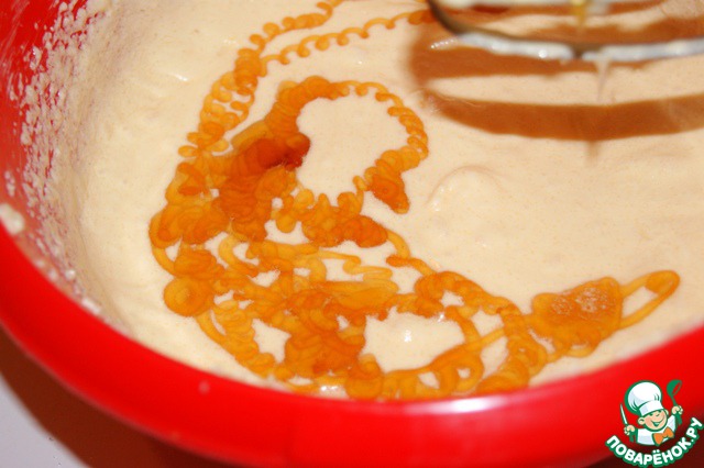 Не перставая взбивать на 1-й скорости миксера ввести молоко и сок.