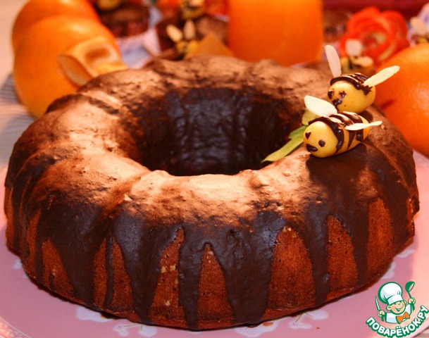 | Ароматный кекс с ярко-выраженным апельсиновым вкусом, нежной и влажной структурой, покрытый шоколадной глазурью — это очень вкусно! |