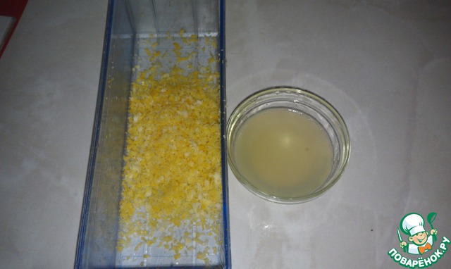 Натереть на мелкой терке цедру со всего лимона. Из лимона выдавить сок.