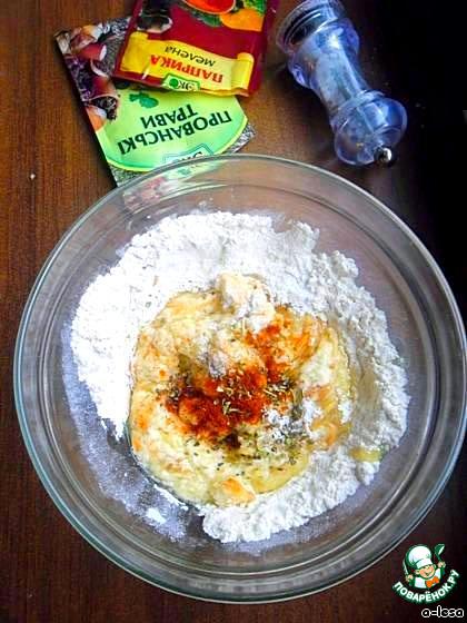 Посолить по вкусу, добавить паприку, ароматные травы (в идеале свежие), я использовала смесь "Прованские травы". Перемешать.