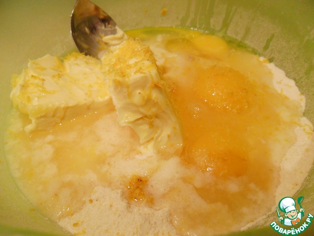 Вводим все сырые ингридиенты - размягченное сливочное масло, яйца. Натираем цедру одного лимона и отжимаем лимонный сок.