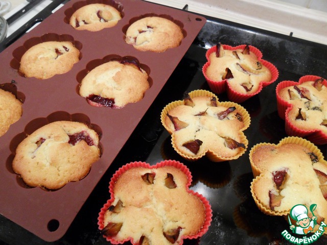 А можно дольками - притопите их в тесте - когда оно поднимется в духовке - сливы практически "утонут" и слегка увлажнят наши кексы.