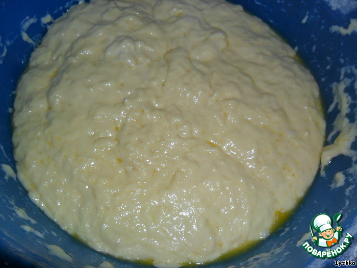 Дрожжи заливаем 0,5 стакана теплой воды и добавляем 2 ч.л. сахара, отставляем до образования пены. В 0,5 теплого молока добавляем 1 яйцо, сахар, соль, дрожжи, ванилин, все перемешиваем, я делала это венчиком. Муку просеиваем и замешиваем мягкое, гладкое тесто. Растопленный маргарин выливаем в тесто и хорошо вымешиваем. Оставляем на полтора-два часа для расстойки. В процессе 2 раза тесто сбить.