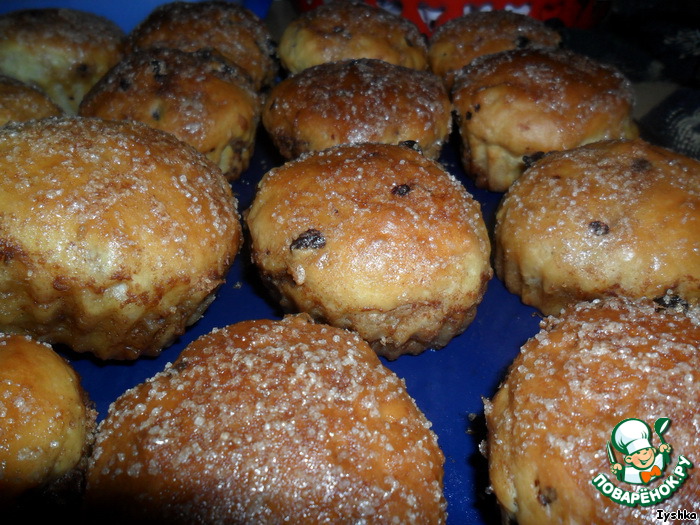 Когда кексы уже практически готовы (проверить можно зубочисткой), достаем, обильно мажем маслом с сахаром и корицей и ставим в духовку еще на 3-4 минутки. Достаем, накрываем полотенцем и даем немного постоять.