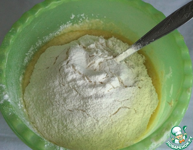 Добавить просеянную муку с разрыхлителем.