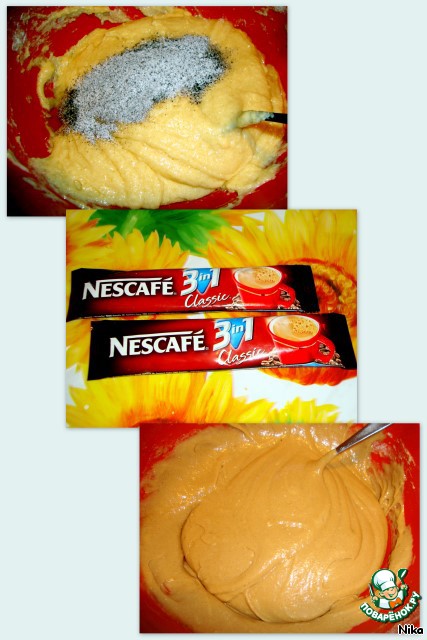 Для вкуса и цвета высыпала два пакетика растворимого кофе (3 в 1). Хорошо перемешала. Цвет мне понравился.