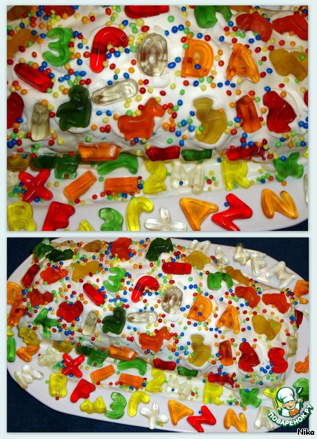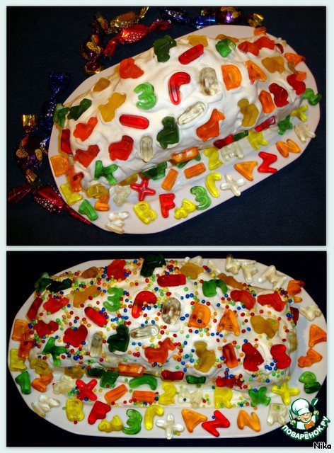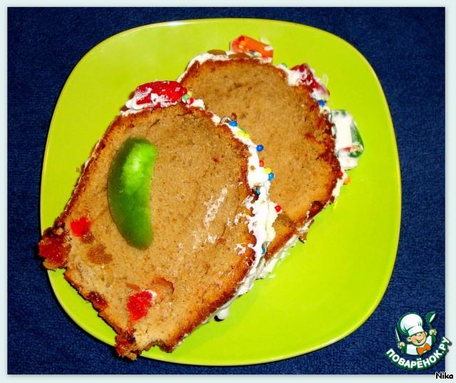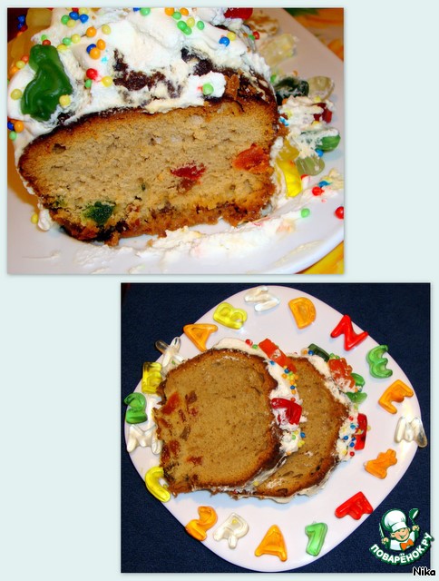 | В этом месяце будет три года, как я зарегистрировалась на Поварeнке. В самом начале я заглядывала время от времени на сайт в качестве гостя. И вот уже один год и два месяца я считаю себя (активным) пользователем на Поварeнке. Этот кекс хотела выставить 25 -го декабря, но решила выставить сегодня, т. к. с 7 -го буду работать без выходных и вряд ли смогу появиться здесь. Кекс вкусный. И скорее для ребeнка, чем для взрослого поварeнка. Но поварeнок я совсем ещe маленький... Украсила жевательными конфетами. Так давайте же пожуeм вместе в знак моего трeхлетия на этом сайте. |