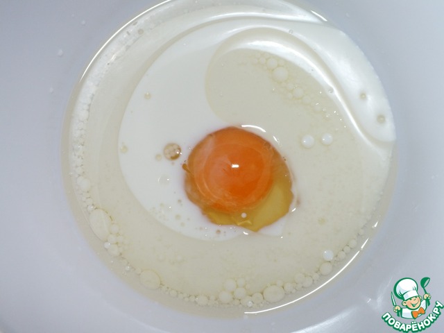 В яичную смесь по ложке добавить мучную смесь, размешивая венчиком