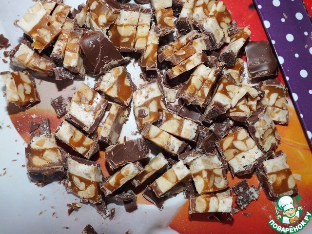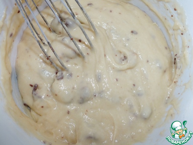 В тесто добавить нарезанные шоколадки, аккуратно размешать венчиком.