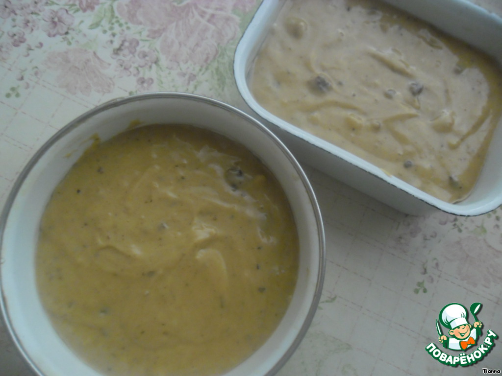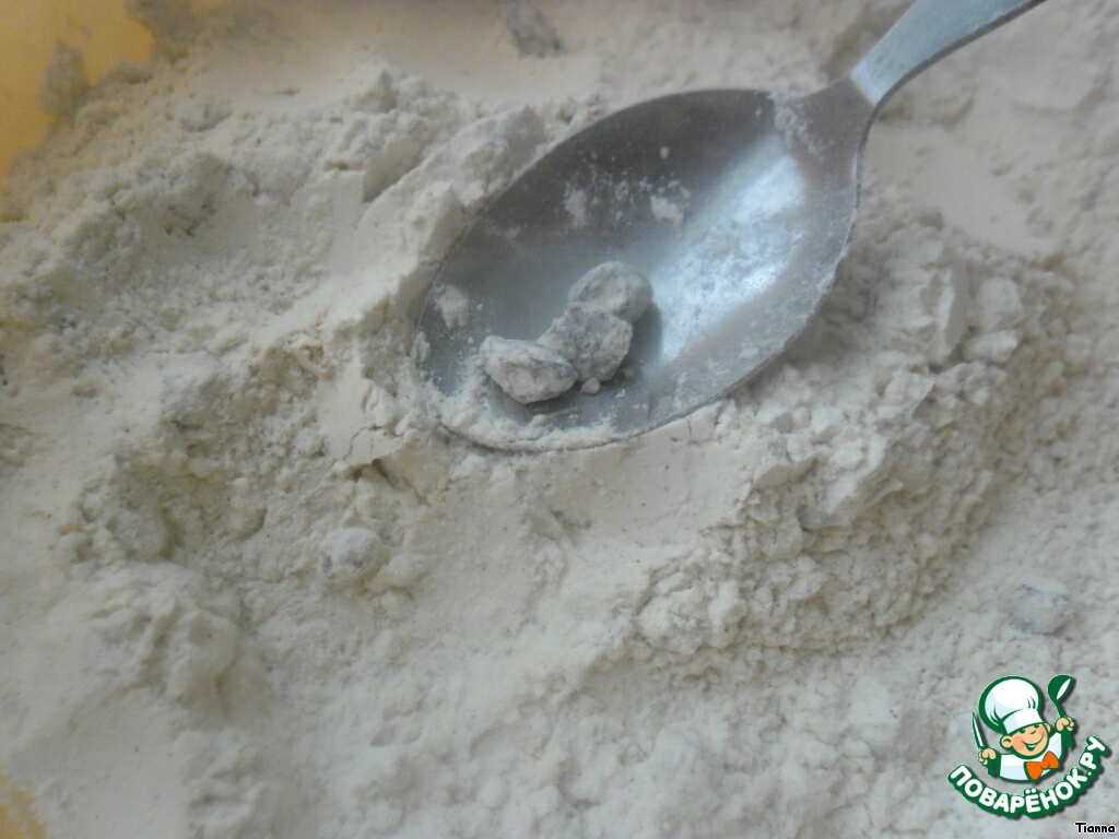 Влить получившуюся массу к мучной смеси и тщательно перемешать.
