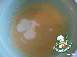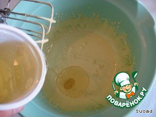 Желтки взбить с сахаром до побеления и увеличения массы в 2 раза,