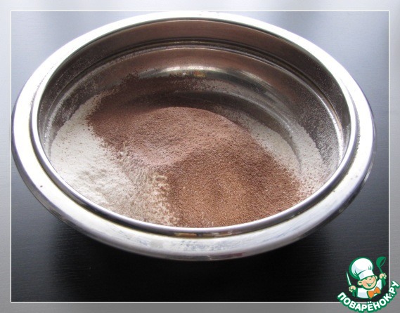 Соединить обе смеси, замесить тесто и поставить в холодильник минут на 20.