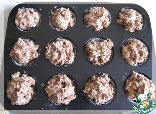 Выложить охлажденное тесто в формы для маффинов. Выпекать 15-20 минут при температуре 180 градусов.