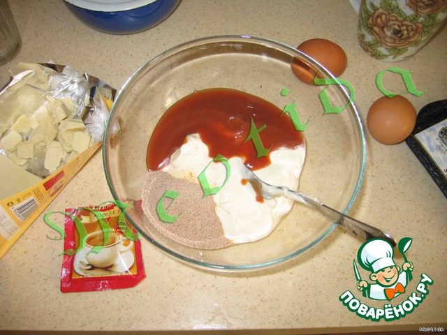 Ягоды измельчить блендером, протереть через мелкое ситечко, соединить с сахаром, сметаной и кофе