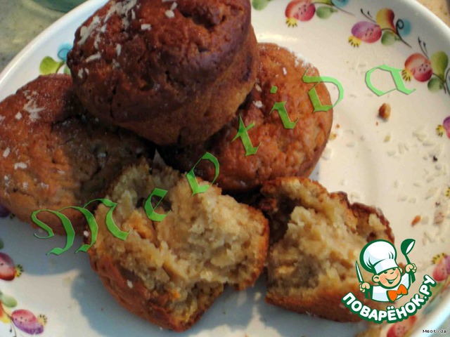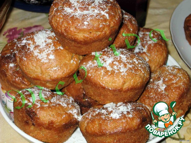 Готовые кексики можно посыпать сахарной пудрой и кокосовой крошкой