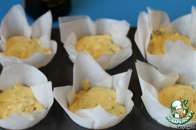 | Такое название, чтоб вы улыбнулись. ))) На самом деле рецепт очень простой, быстрый в приготовлении и очень удобный для пикника. Раньше никогда не добавляла соус в тесто, решила попробовать, и на удивление получилось очень вкусно. Соевый соус тонко и нежно чувствовался в тесте, придавая некую пикантность в сочетании с креветками и перчиком чили. Маффины получились очень сочными, но я все-таки приготовила к ним сырный соус. А еще вспомнила времена, когда купить манжетки для маффинов было просто невозможно, и готовила их в таких вот кулечках из бумаги для выкроек. (Про бумагу для выпечки тоже молчу. ) |