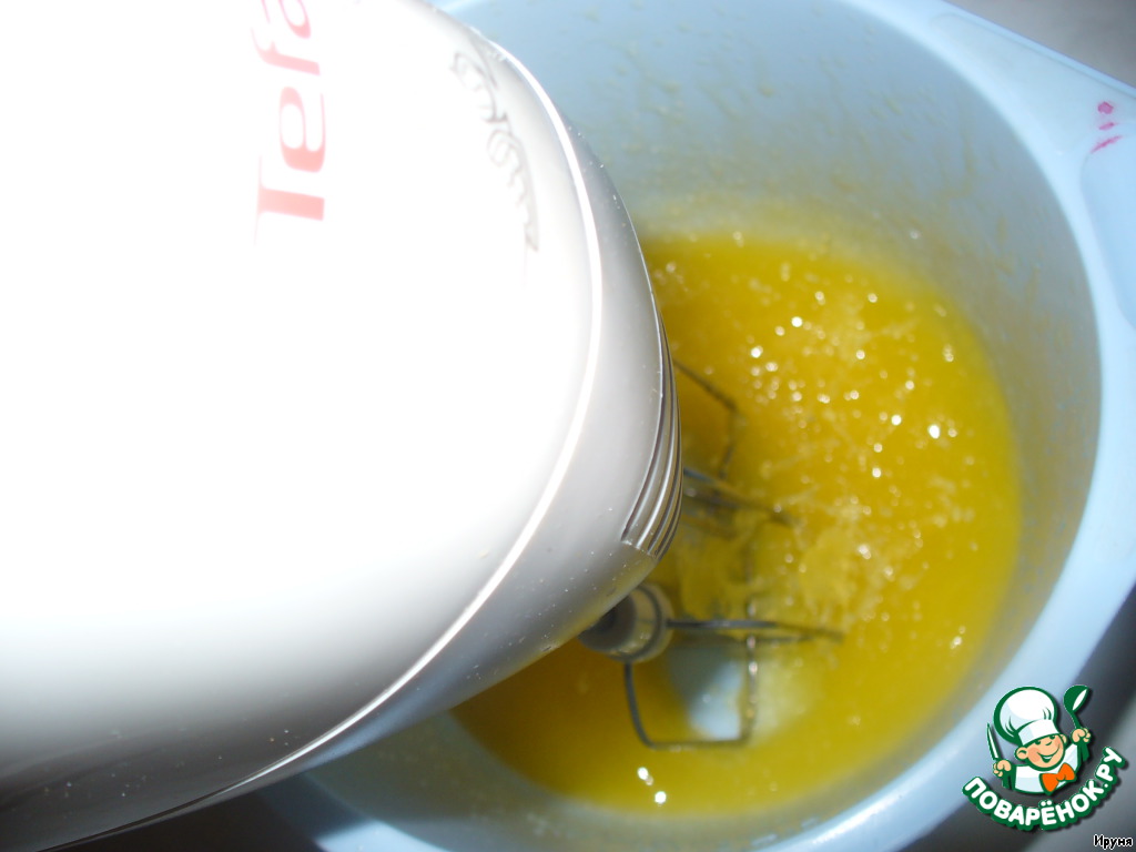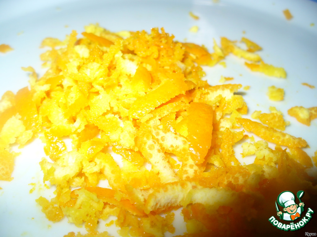 Добавляем яйцо, снова взбиваем. Добавляем апельсиновую цедру, только что снятую с апельсина. Нам нужно 1 ст.л. цедры, это примерно с половины апельсина.