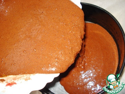 Хорошо перемешиваем и выливаем в форму, выстеленную пергаментом диаметром 20 см.