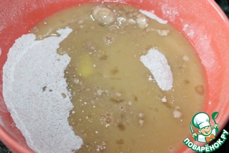 Соединяем мучную и молочную смеси, хорошенько перемешиваем.
