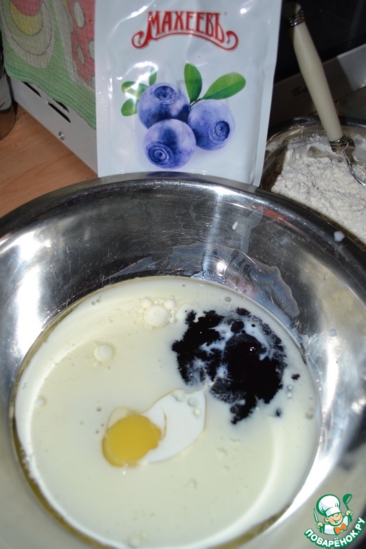 Смешать сухие и жидкие ингредиенты.