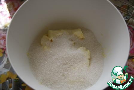Сливочное масло размягчить и миксером взбить с сахаром и ванильным сахаром.
