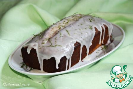 Готовый кекс покрываем лаймовой глазурью: берем сок от одного лайма, смешиваем с сахарной пудрой до однородности. Масса должна быть густой и не течь с ложки (у меня получилась жидковата немного).