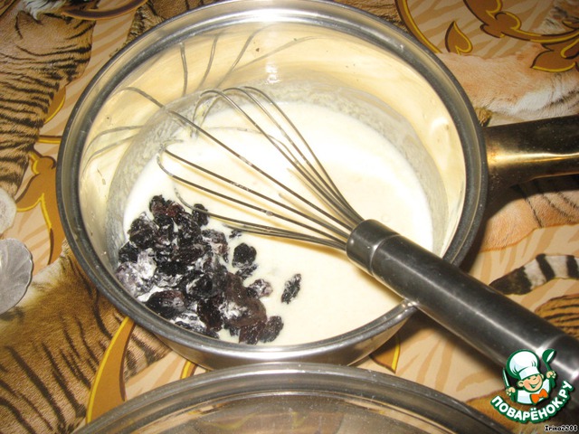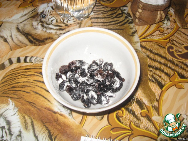Изюм вынуть из кипятка и обвалять в муке (обычной)