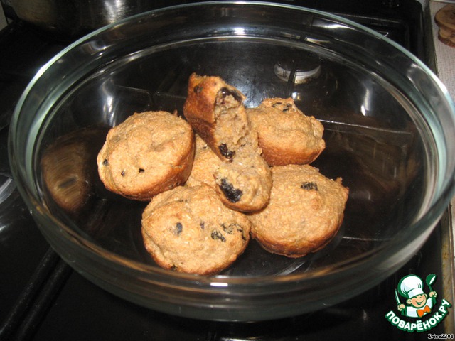 Вот такие кексики после выпечки. Я делала всего 6 штук, так сказать на пробу, мне понравилось. Маффины напоминают ржаной хлебушек, но сладкий, думаю с яблочным пюре вкус будет иной