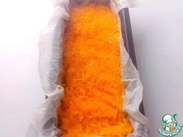 Сверху распределить натертую тыкву. Выпекать в разогретой до 180 С духовке примерно 40-45 минут (до сухой спички).