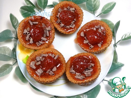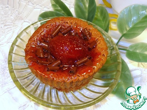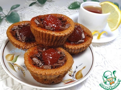 Готовые кексы украшаем: смазываем немного вареньем, посыпаем орехами и тертым шоколадом. Можно украсить ягодой.