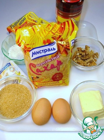 Для приготовления шоколадно-ореховых кексов нам понадобится шоколад, яйца, мука, сахар, масло сливочное, орехи, разрыхлитель, коньяк, кофе растворимый.