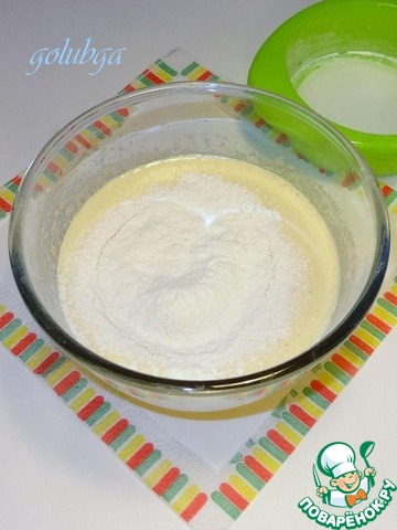 Вмешать во взбитые яйца просеянню муку, разрыхлитель, ванилин,