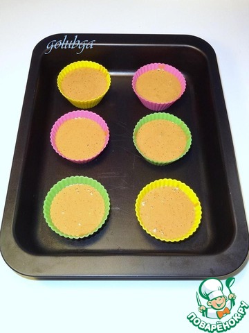 Выложить тесто в смазанные формочки для кексов. Обязательно перемешиваем смесь в миске, чтобы орехи не осели на дно и были во всех формочках.